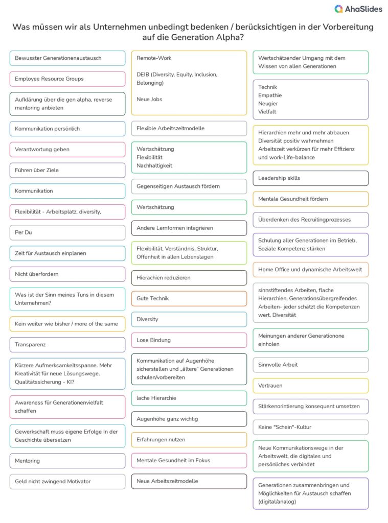 „Auch wenn sie wissenschaftlich nicht sauber sind, sondern ihren Ursprung eher im Marketing haben, so helfen uns die Generationen-typologien, also die Einteilung in Baby Boomer, Generation X, Generation Y, Generation Z und nun auch Alpha, Unterschiede verständlich zu machen.“, so Peter Rieder in seinem Input zur Generation Alpha. Gerade in der jüngsten Generation ist die Datenlage noch dürftig, jedoch wurden bereits Untersuchungen in Form von großangelegten Befragungen unter pädagogischem Fachpersonal durchgeführt, die zeigen, wie die Generation Alpha tickt. Generell liegen die Unterschiede zwischen Generationen im Erfahrungsschatz, also Zeitgeschehen, wirtschaftliche Situation, Werte, Arbeitsmarktsituation, Freizeitverhalten, Technologie, die sie als Kollektiv machen und der ihren Blick auf die Welt prägt.