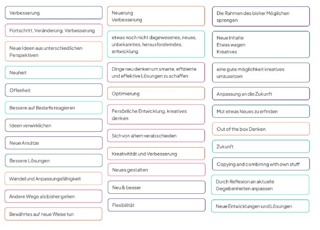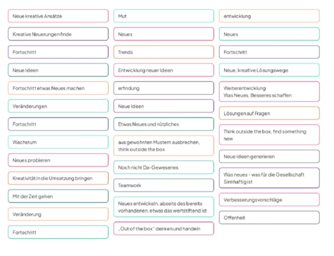 Eine interaktive Umfrage zu Beginn zeigte, dass Innovation viele Gesichter hat. Sie reicht von kreativen Ideen über Prozessoptimierungen bis hin zu mutigem „Think outside the box“-Denken.
