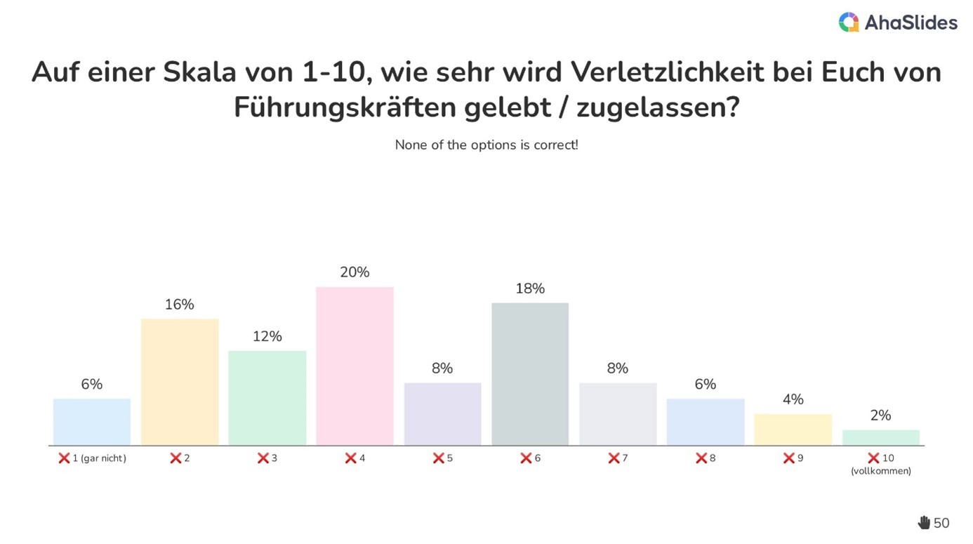 In unseren interaktiven Abfragen hat sich gezeigt, dass diese Skills unter den rund 90 anwesenden Organisationen unterschiedlich verteilt sind:
