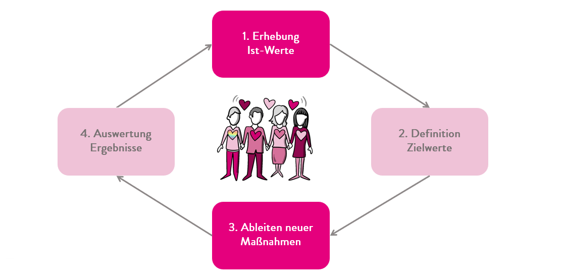 Wie ein Prozess der Messung von D&I aussehen kann, zeigt die folgende vereinfachte Darstellung: