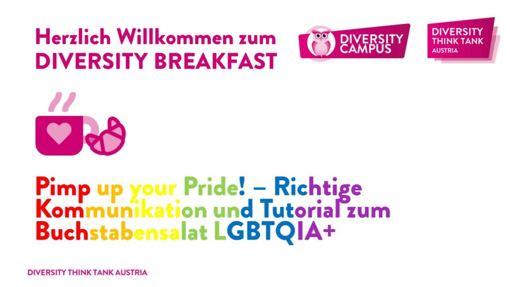 Im Zuge des Pride Monats 2023 haben wir uns bei unserem Diversity Breakfast am 15. Juni 2023  unter dem Motto ‚Pimp up your Pride‘ mit den Themen Kommunikation und Rainbow Washing vs. echtem Engagement auseinandergesetzt. Kaum ist der erste Juni erstrahlen Firmenlogos in Regenbogenfarben und der Suchbegriff ‚Pride‘ trendet auf Google.